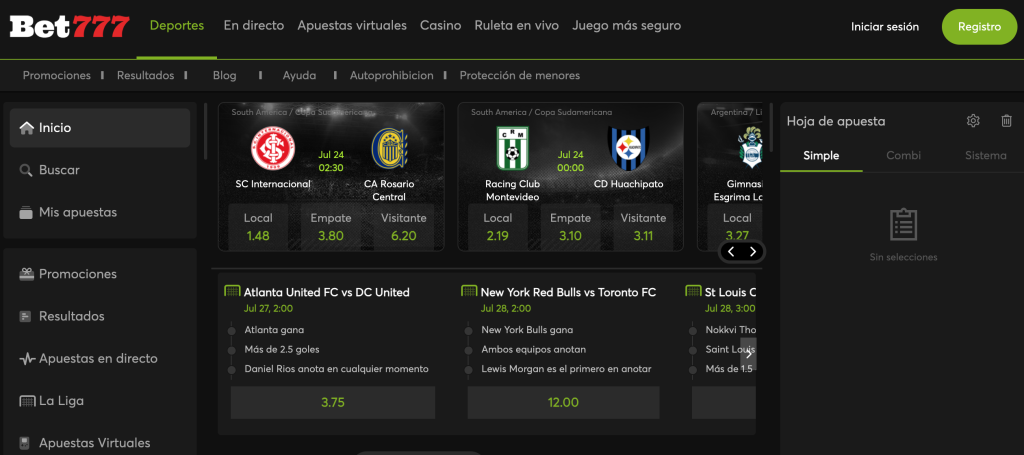 Bet777 es una casa de apuestas en línea conocida por ofrecer una amplia gama de opciones de apuestas deportivas y juegos de casino. Se destaca por su interfaz intuitiva y amigable para los usuarios, facilitando a los apostadores de todos los niveles encontrar y colocar sus apuestas eficientemente. Bet777 ofrece mercados en una variedad de deportes, incluidos fútbol, baloncesto, tenis y más, con competiciones nacionales e internacionales disponibles. Además, proporciona a sus usuarios promociones y bonos regulares, mejorando la experiencia de apuestas y aumentando las posibilidades de ganar de sus clientes. Bet777 también es conocido por su seguridad y fiabilidad, asegurando un entorno de apuestas seguro para todos sus usuarios.
