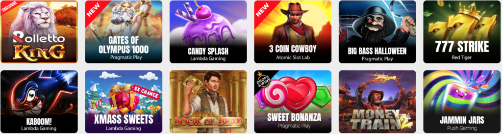 Rolletto Casino ofrece una impresionante variedad de tragamonedas que incluye desde los clásicos de tres rodillos hasta las más modernas video tragamonedas con gráficos avanzados y múltiples líneas de pago. Los jugadores pueden disfrutar de títulos populares desarrollados por proveedores líderes en la industria, asegurando una experiencia de juego emocionante con temáticas variadas y oportunidades de ganar grandes premios.